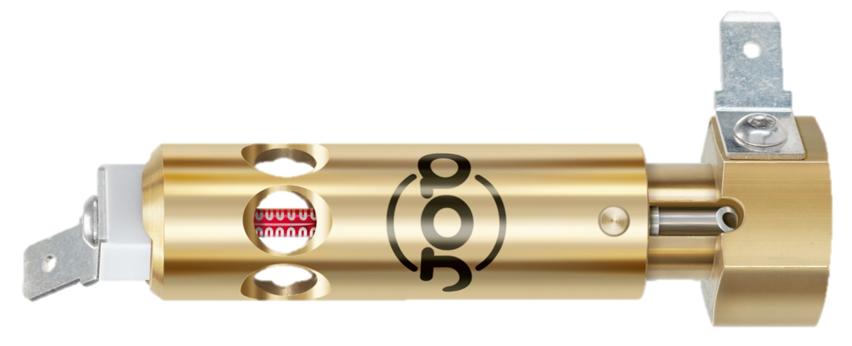 Die verbaute JOB Thermobulb verfügt über eine integrierte Heizspirale die Signalströme mit geringer Leistung leiten kann. Zusätzlich kann sie auch genutzt werden, um die Glasampulle gezielt bis zur Auslösetemperatur zu erhitzen, sobald der Aktivierungsstrom angelegt wird. Ziel ist, den Löschprozess unabhängig von der Wärme eines Feuers einzuleiten, um den Brandschaden geringstmöglich zu halten. Im Falle einer Aktivierung platzt die Ampulle, löst den Löschvorgang aus und unterbricht dauerhaft die elektrische Verbindung, was zur „Überwachung“ der Aktivierung verwendet werden kann.