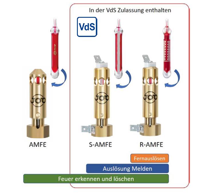 Der Auslösekopf der AMFE funktioniert mit den milliardenfach im Feld im Einsatz befindlichen Thermoampullen des Herstellers zur präzisen und zuverlässigen Temperaturerkennung im Brandfall.